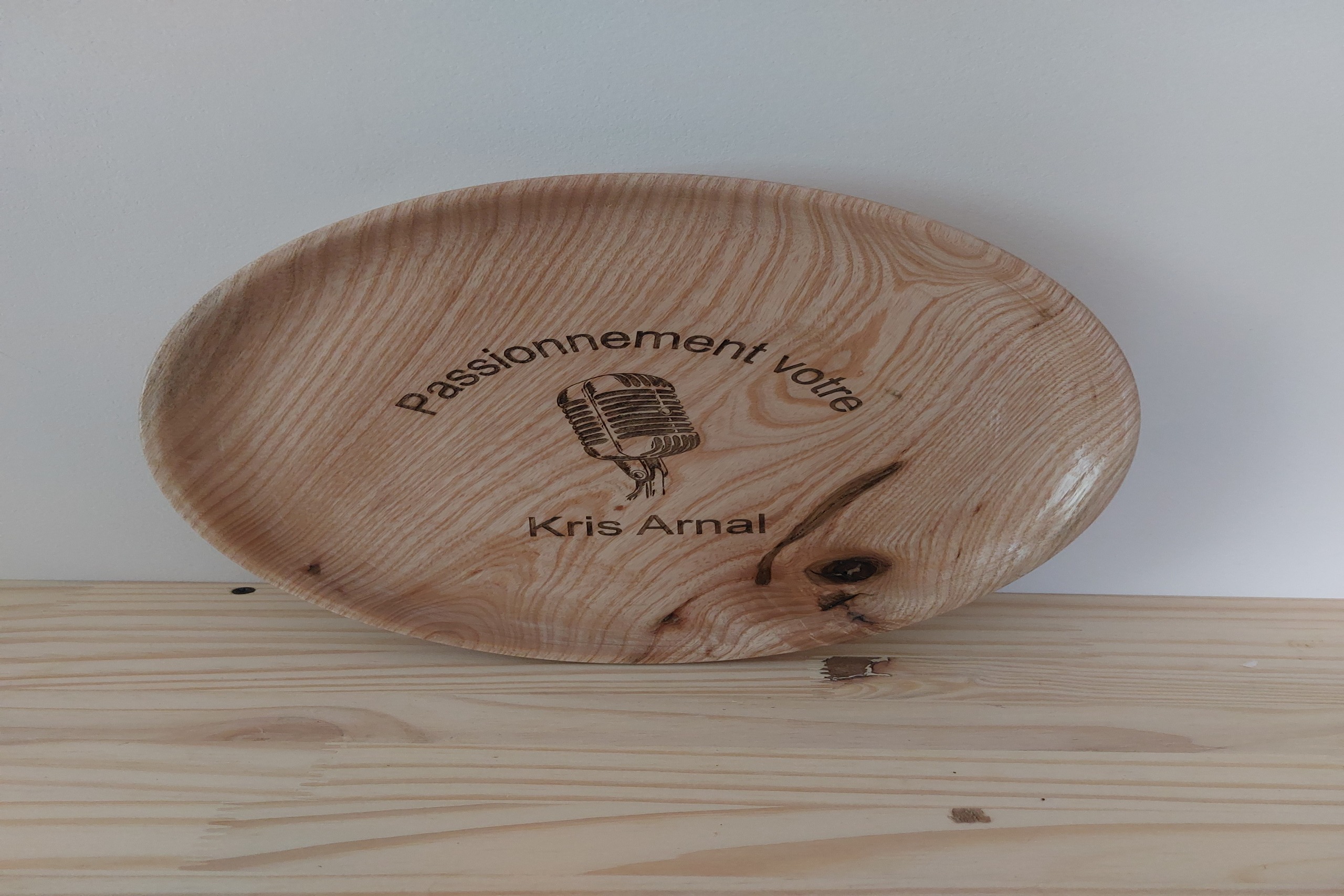Assiette en frêne personnalisable.